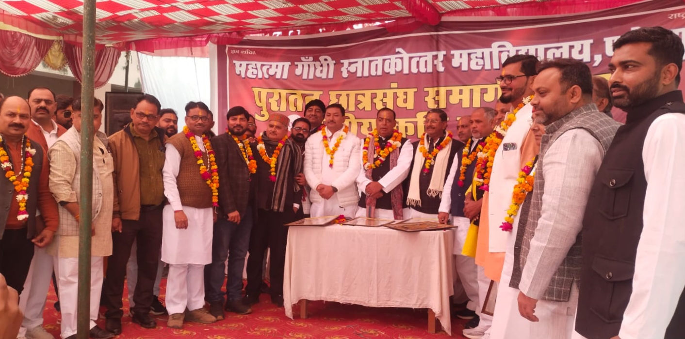 फतेहपुर(वी.टी)। महात्मा गांधी डिग्री कॉलेज परिसर में पुरातन छात्र सम्मान समारोह एवं कवि सम्मेलन का आयोजन किया गया।कार्यक्रम की अध्यक्षता पूर्व महामंत्री राजेंद्र शुक्ल व संचालन पूर्व महामंत्री कुलदीप सिंह भदौरिया ने किया। सम्मेलन में 60 पूर्व पदाधिकारियों को माल्यार्पण कर प्रतीक चिन्ह देकर सम्मानित किया गया।वक्ताओं ने कहा कि आज भले ही छात्र संघ के पूर्व पदाधिकारी अलग-अलग क्षेत्र में अपनी पहचान बना रहे हो लेकिन उनको पहचान दिलाने का कार्य महात्मा गांधी डिग्री कॉलेज में छात्र संघ के चुनाव जीतने से ही मिली। आने वाले समय में पुरातन छात्र संघ समारोह को प्रतिवर्ष आयोजित किये जाने का निर्णय लिया गया। यह आयोजन समिति छात्र संघ चुनाव बहाली के लिए भी प्रयास करेगी। इस अवसर पर यह भी निर्णय लिया गया कि आज चाहे जिस पार्टी से छात्र संघ के पदाधिकारी अपना प्रतिनिधित्व कर रहे हो लेकिन जब महात्मा गांधी डिग्री कॉलेज के छात्र संघ के पूर्व पदाधिकारियों की बात आए तो यह आयोजन समिति एक होकर एक नाके से उसके लिए कार्य करें और अगर यह संभव होता है तो वह दिन दूर नहीं जब छात्रसंघ के पूर्व पदाधिकारी चेयरमैन, विधायक और सांसद बनेंगे। इसके साथी यह भी तय किया गया कि जो चिंगारी जली है यह आसपास के जनपदों तक जाए और जब भी चर्चा चले तो इतिहास की इबारत लिखी जाए कि यह आग फतेहपुर से जली थी। इस अवसर पर कवि सम्मेलन का भी आयोजन किया गया जिसमें कवियों ने एक से बढ़कर एक रस फुहार छोड़ी जिसको सुनकर लोगों ने खूब तालियां बजाई। जिसमें समीर शुक्ला, शिवशरण बंधु, प्रवीण प्रसून, उमाकांत सहित अन्य कवि रहे।इस मौके पर पूर्व अध्यक्ष प्रमोद द्विवेदी, महेश द्विवेदी, पुत्तू मिश्रा, अरुणेश पांडेय, नरेंद्र मुंशी, स्वरूप राज सिंह जूली, वीरेंद्र सिंह चौहान,दिलीप पटेल, दीपक कुमार डबलू, बुद्धराज धाकड़ी, सुरेश तिवारी, अमित मिश्रा उर्फ नीटू, अरुणेश पांडेय,राम प्रताप सिंह गौतम, विवेक श्रीवास्तव, शैलेंद्र शरण सिंपल, करन सिंह, राम सिंह पटेल, रोहित श्रीवास्तव,आदित्य श्रीवास्तव, भूपेंद्र सिंह, कासिम अली,संतोष त्रिपाठी, जितेंद्र लोधी, घनश्याम पाल टक्करी,नदीमउद्दीन पप्पू,जैद अहमद, अतुल मौर्य उर्फ दीपू,सतेन्द्र गुप्ता,अजय सिंह उर्फ रिंकू लोहारी, अपर्णा सिंह गौतम सहित तमाम छात्र नेताओं ने मंच से संबोधित किया।