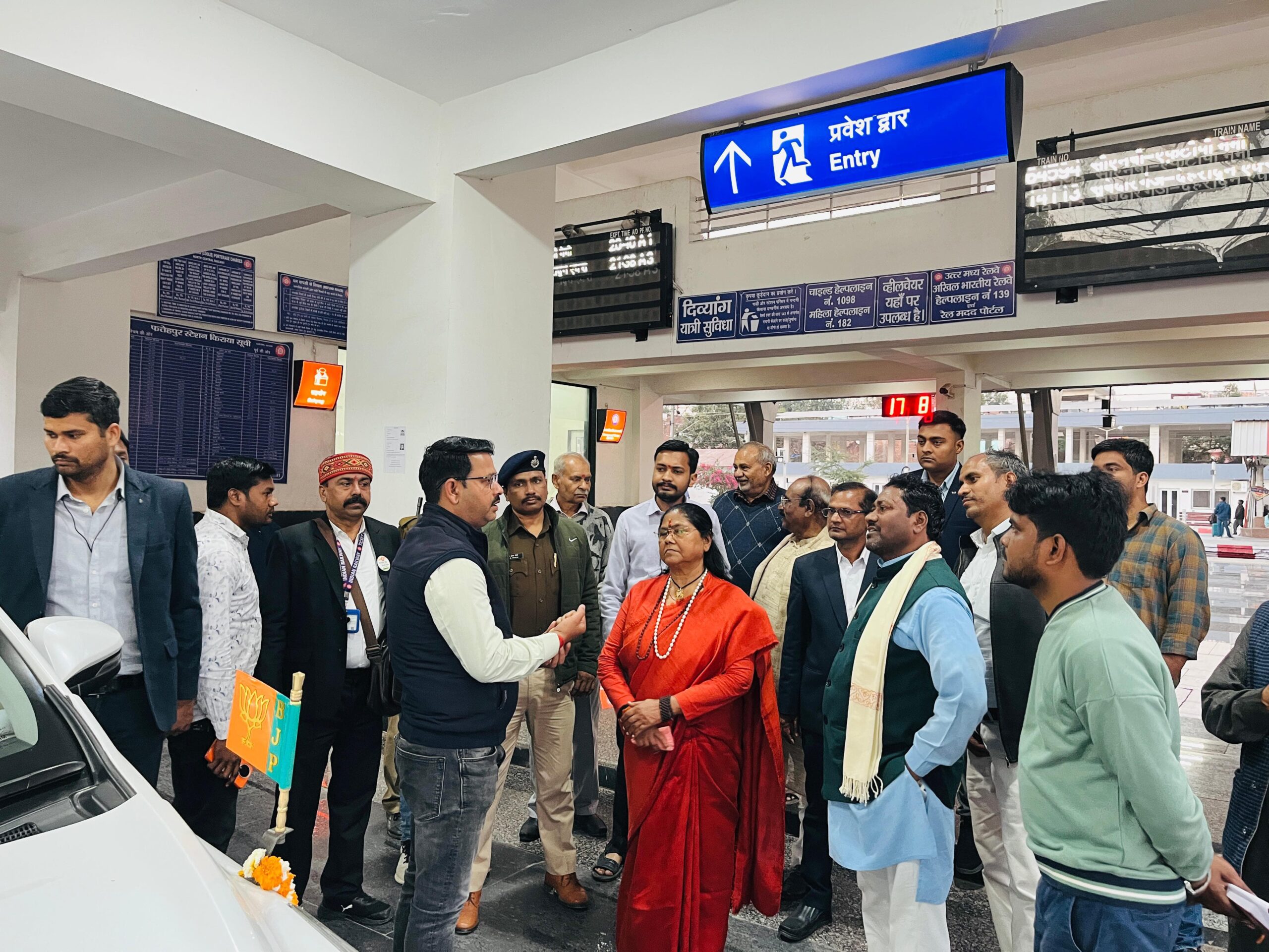 फतेहपुर(वी.टी)। पूर्व केंद्रीय राज्य मंत्री मंत्री साध्वी निरंजन ज्योति ने अमृत भारत योजना के अंतर्गत नव निर्मित प्लेटफार्म नंबर 4 व फुट ओवर ब्रिज सहित विभिन्न यात्री सुविधाओं का स्थलीय निरीक्षण किया। बताया कि 17 फरवरी से प्लेटफार्म को जनता लिए चालू कर दिया जाएगा । संबंधित अधिकारियों को दिशा निर्देश दिया कि जन सुविधाओं में किसी भी प्रकार की कोताही न बर्ती जाएं। इस दौरान राजेंद्र निषाद, स्टेशन अधीक्षक, महेंद्र गुप्ता शिव प्रताप सिंह रघुवीर लोधी राकेश तिवारी डॉ.उदय प्रताप सिंह सहित तमाम कार्यकर्ता वह अधिकारी मौजूद रहे।