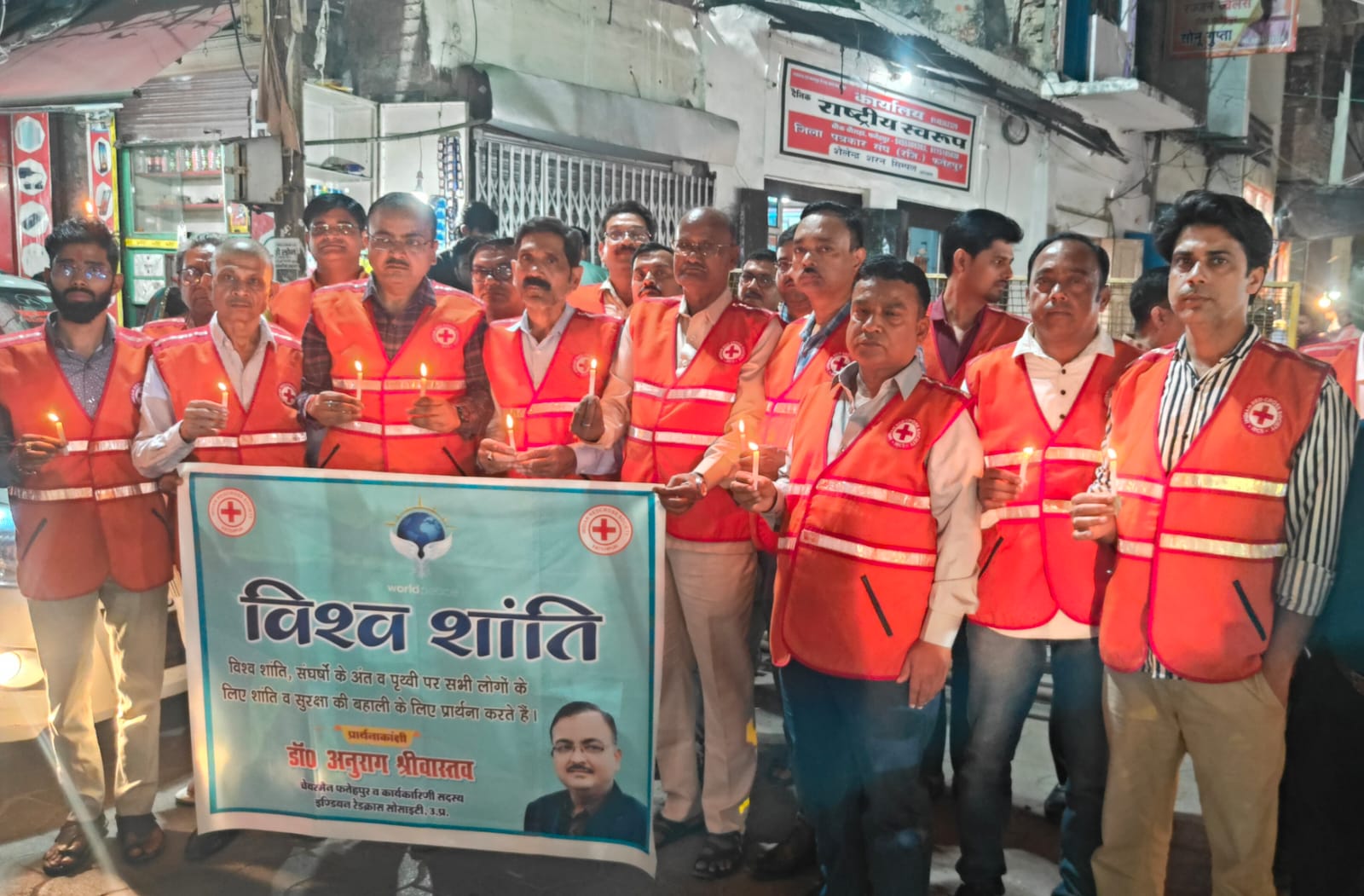 विश्व शांति के लिए रेड क्रॉस सोसाइटी सदस्यों ने कैंडल जला ईश्वर से की प्रार्थना